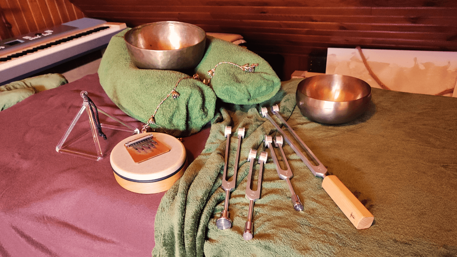 Chaque instrument est choisi selon vos besoins ou vos envies pour favoriser l’ancrage, la détente et l’exploration intérieure.